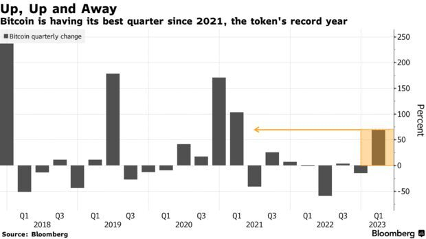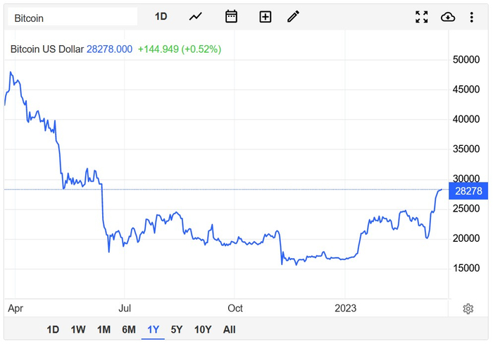 智通财经APP获悉,比特币正朝着自2021年初以来最大的季度涨幅前进。2023年迄今为止,比特币已大涨近70%。截至发稿,比特币报28278美元/枚,为去年6月中旬以来的最高水平。