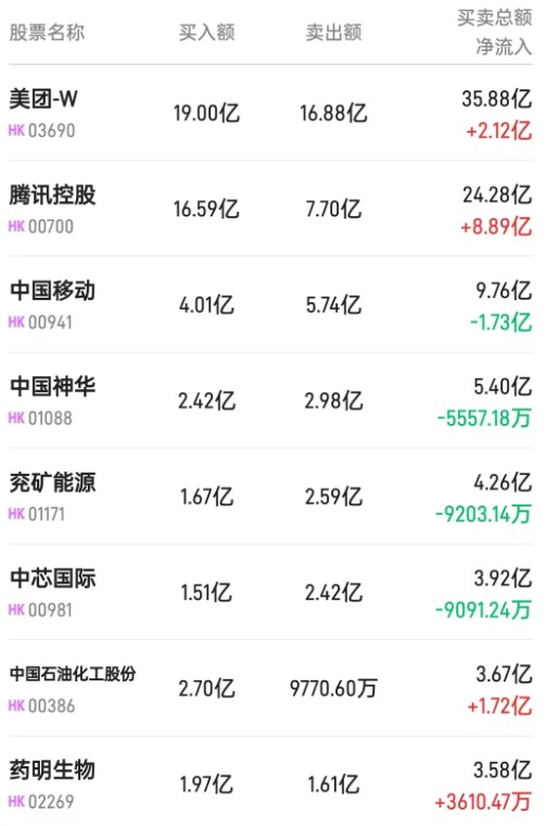中石化(00386)获净买入2.79亿港元。消息面上,中国石油化工发布年度业绩,期内实现营收3.32万亿元,同比增长21.1%;归属母公司股东的净利润为663亿元,同比下降6.9%。此外,中石化拟向控股股东定增A股股票募资不超120亿元。民生证券表示,随着国内需求的恢复,公司炼化业务盈利有望改善,且在国家大力推动国央企改革深化、推动完善中国特色估值体系的背景下,公司估值有望提升。