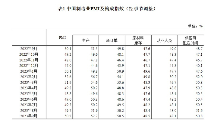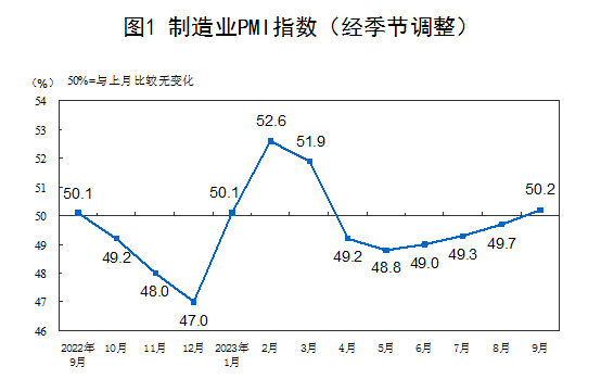 9月份,制造业采购经理指数(PMI)为50.2%,比上月上升0.5个百分点,重返扩张区间。
