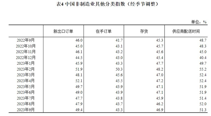 供应商配送时间指数为50.8%,比上月下降0.8个百分点,仍高于临界点,表明制造业原材料供应商交货时间继续加快。