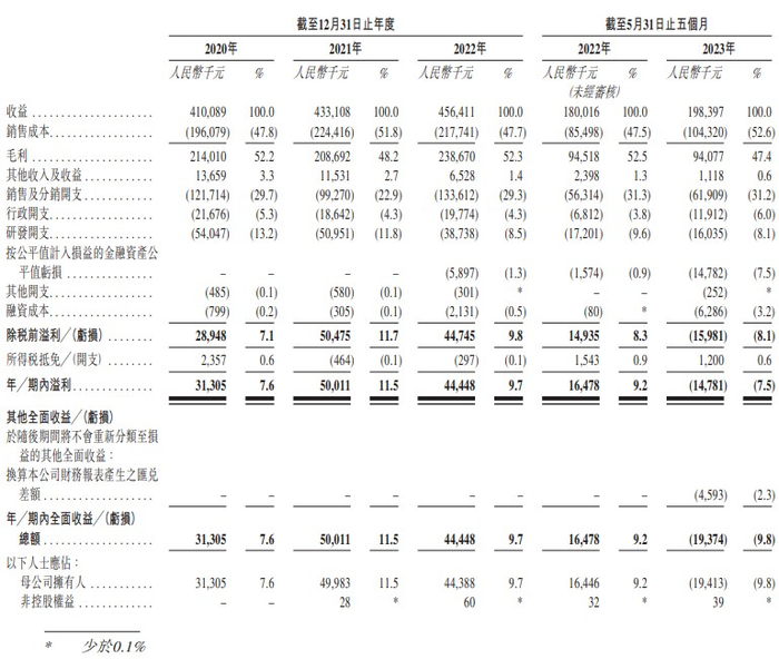 财务方面,于2020年、2021年、2022年以及2023年截至5月31日止5个月,宜搜科技实现收益分别约为4.10亿元、4.33亿元、4.56亿元以及1.98亿元人民币;同期,年内溢利分别约为3130.5万元、5001.1万元、4444.8万元以及-1478.1万人民币。