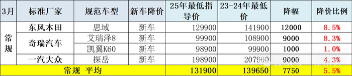 今年的新车降价规模相对温和。目前的价格竞争主要是新车推出直接突破原有价格的下限,而不是增配不降价的模式。降价的车型在3月份较少,仅有4款,降价也很难有较大的关注,因此新车提升性价比的方式较好。