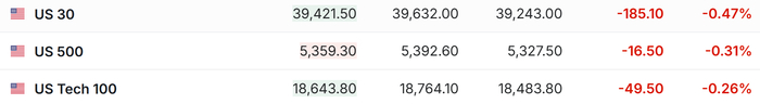1. 4月24日(周四)美股盘前,美股三大股指期货齐跌。截至发稿,道指期货跌0.47%,标普500指数期货跌0.31%,纳指期货跌0.26%。