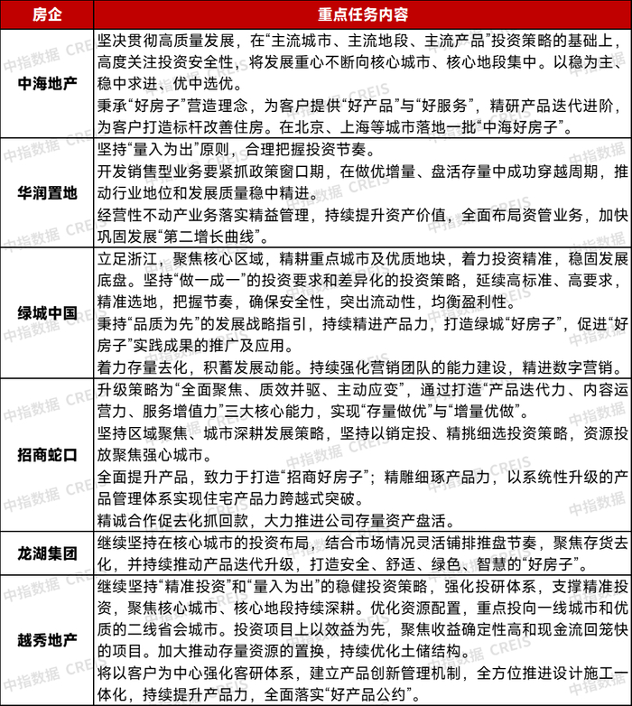 数据来源:中指数据CREIS房企战略:精准投资,效率为先,聚焦“好房子”,加速去化与存量资产盘活