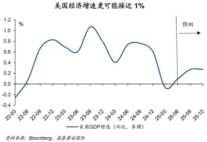 但即便如此,未来一段时间的美国经济也仍然面临较大的压力。尽管消费表现尚可(环比折年率增长1.8%),但这一水平仍然低于过去数年动辄接近或超过3%的水平。与此同时,由于担心关税影响,美国也存在一定的“抢消费”,因此目前尚可的消费动能是否能够维持,也存在一定的疑问。更加重要的是,第一季度的政府支出为负增长,未来这样的趋势大概率仍然会持续,因此整体经济动能大幅反弹的概率不高。综合而言,该行倾向于认为美国经济在2025年的增长率会更接近于1%,而非2%。