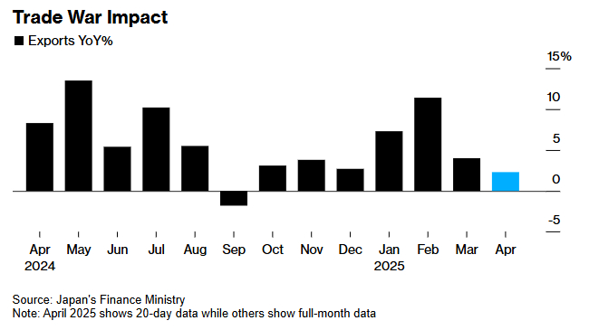 智通财经APP获悉,日本出口在4月前20天有所放缓,原因是美国加大对新车和所有产品征收关税的力度。日本财务省周五公布,出口额较上年同期增长2.3%。相比之下,3月份前20天出口增长4.2%,全月出口增长4.0%。截至今年3月的一年里,日本出口平均增长6.1%。