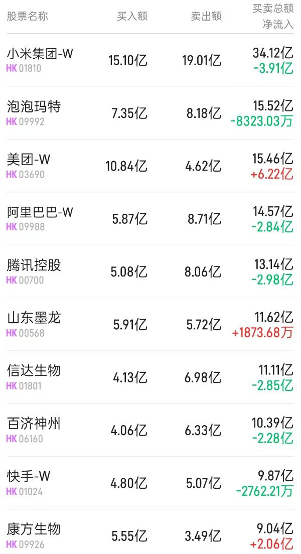 此外,山东墨龙(00568)获净买入7375万港元,而中国海油(00883)、信达生物(01801)分别遭净卖出2.6亿、2.84亿港元。