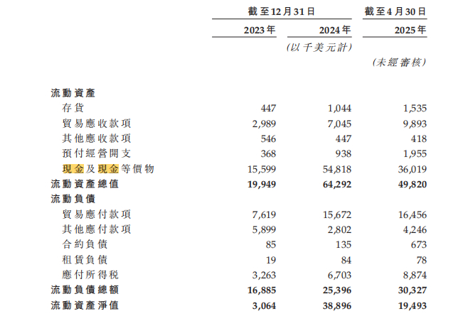 营收与利润的高速增长,亦带动了现金流的增长。据招股书数据披露,截至2024年,公司经营活动现金流净额达4175.3万美元,同比增长55%;期末现金及现金等价物为5481.8万美元,同比增长251.42%。