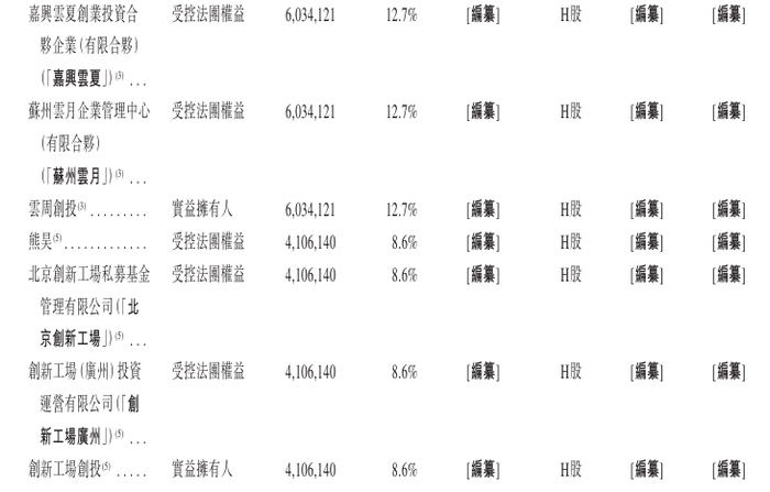 毛丞宇、上海云畔、嘉兴云启、嘉兴云夏及苏州云月被视为于云周创投持有的全部股份中拥有权益。云成投资持有723,333股股份(占已发行股份总数的约1.5%)由其普通合伙人上海云畔管理及控制。熊昊、北京创新工场及创新工场广州被视为于创新工场持有的全部股份中拥有权益。