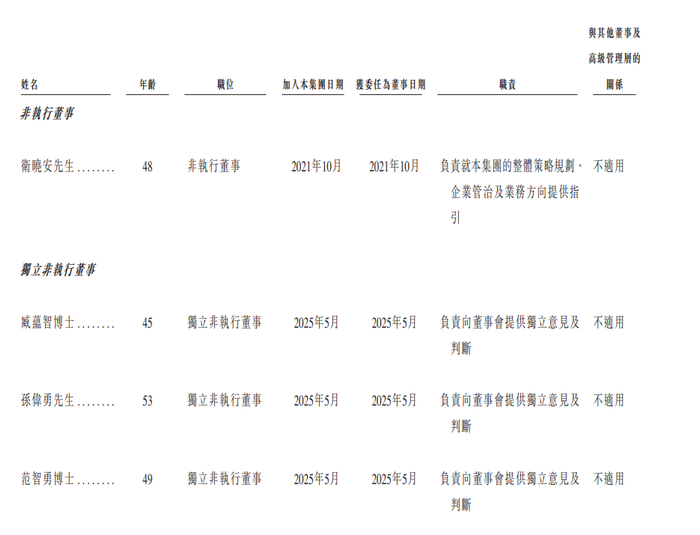 董事会将由七名董事组成,包括三名执行董事、一名非执行董事及三名独立非执行董事。董事会负责本公司的管理及营运,并对其拥有整体权力。董事任期为三年,并符合资格于任期届满后膺选连任。
