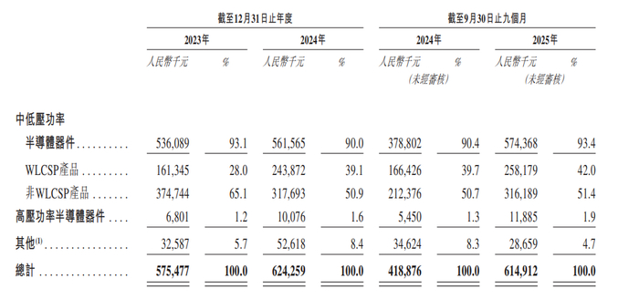 具体来看,收入的持续稳健成长主要得益于中低压功率半导体器件产品的带动,特别是WLCSP产品的快速放量成为了推动收入增长的关键性支撑,该产品占总收入的比例也从2023年的28%提升至了2025年前三季度的42%。而在2025年前三季度中威兆半导体业绩增长加速主要是因为WLCSP产品与非WLCSP产品的齐放量,双轮驱动收入加速增长,再叠加WLCSP产品毛利率的明显提升,带动期内公司整体毛利率从15.9%提升至23.8%,从而推动了净利润的大幅飙升。
