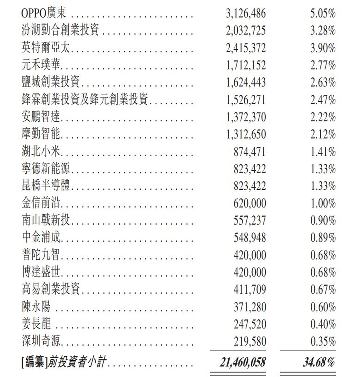 而在两年半进行6次融资之后,威兆半导体的股东阵容已呈现出了“产业资本绑定+国有资本力挺+专业财务资本加持”的复合型结构。其中,产业资本便包括了OPPO、英特尔亚太、湖北小米、宁德新能源、华勤技术(通过摩勤智能控股)等,当前的持股比例分别为5.05%、3.9%、1.41%、1.33%、2.12%。