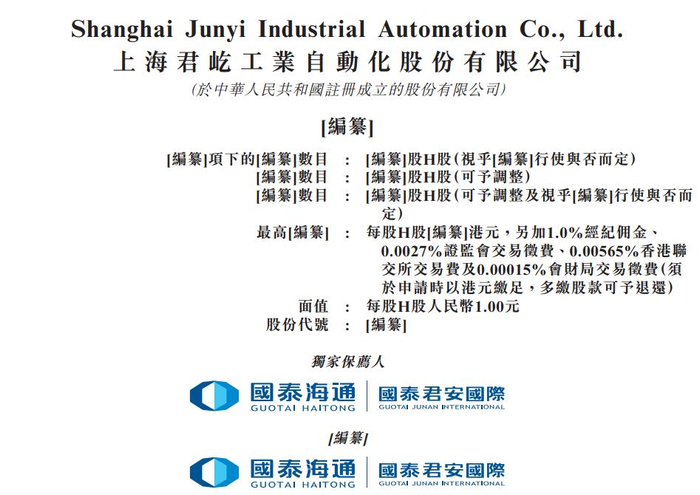 智通财经APP获悉,据港交所1月23日披露,上海君屹工业自动化股份有限公司(简称:上海君屹)向港交所主板递交上市申请书,国泰海通国际为其独家保荐人。