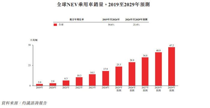 在下游需求端,全球NEV销量近年来保持高速增长。全球NEV销量已由2019年的约 200万辆增至2024年的约1,790万辆,复合年增长率约为54.6%。预计到2029年,该数字将进一步攀升至约4,720万辆,2024年到2029年的复合年增长率约为21.4%。NEV产销量的持续扩张带动动力电池装机量稳步上升,加之电池技术向高能量密度、高集成度和高安全性方向演进,电池企业与OEM对生产线的新建和扩建需求显着增加,尤其是在中后段模组及 PACK环节,形成大量新增产线与改造升级需求。