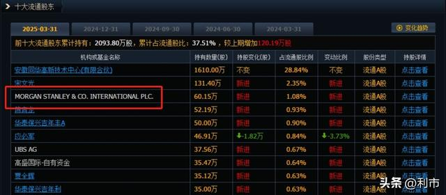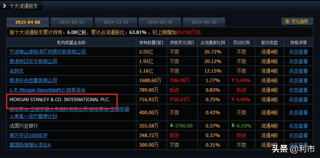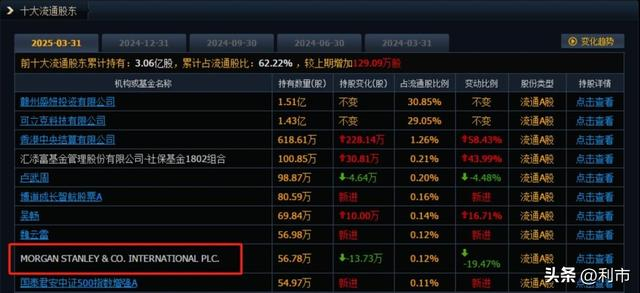 公司最新市值高达123亿元,摩根士丹利为第六大流通股东,摩根大通则是位列第五大流通股东。