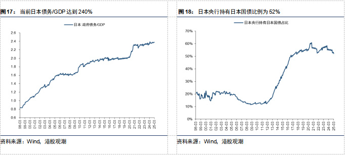 不过,现在日本国债已经站在悬崖边之上。结构性供需失衡导致日债陷入“价值陷阱”,难以为继。现在日本央行已经陷入进退维谷的两难困境:若央行维持原有政策、继续QT将推升长端收益率,作为单一最大股东,押注的是国家信用,而套利者众多,引发恶性螺旋通胀将直接导致股债汇三杀,恐后续呈现灾难场景难以收场,导致金融机构巨额账面亏损。若重启QE则可能引发日元崩盘与恶性通胀,形成“政策死循环”。