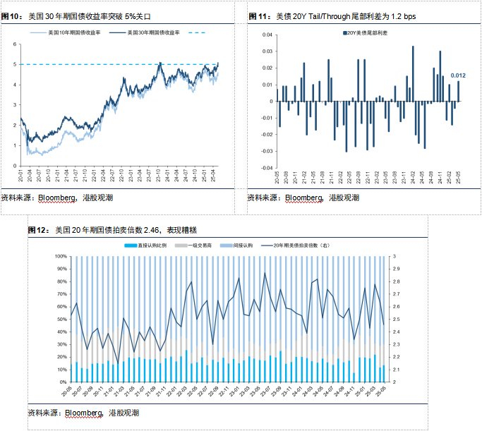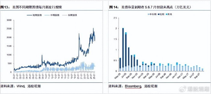 不过,目前全球流动性危机的引爆点并不在美国。特朗普的“大漂亮法案”(《One Big Beautiful Bill》)通过在即,美债上限问题得到短暂解决后,美国财政部可能在7-9月集中投放新增美债,美国市场遭受系统性流动性冲击的风险上升,美联储开启QE等扩表政策来救市的迫切性正在提升。这些短期操作能在一定程度上,解决近渴。但目前市场的主线仍在于“大漂亮法案”导致的赤字担忧,将进一步导致美国长端利率快速上行。若美国经济数据继续转弱,长端美债仍面临较大的抛售压力。
