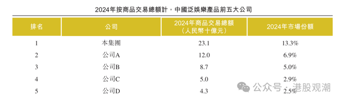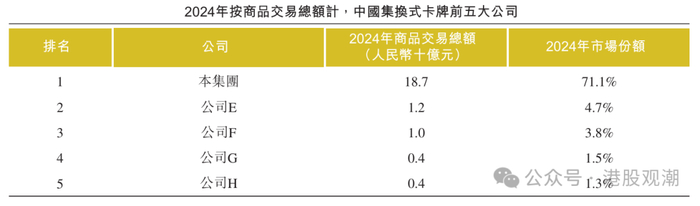 聚焦于集换式卡牌这个细分行业来看的话,公司系该领域的绝对龙头。中国集换式卡牌行业高度集中,行业的主要市场参与者包括宝可梦公司、杰森动漫、华立科技及科乐美集团等企业。按商品交易总额计,中国集换式卡牌行业中前五大公司占2024年总市场份额的82.4%。但发行人在集换式卡牌行业中排名可谓“一骑绝尘”,市场份额高达71.1%,超过行业其他所有竞争对手之和,稳居市场龙头地位。