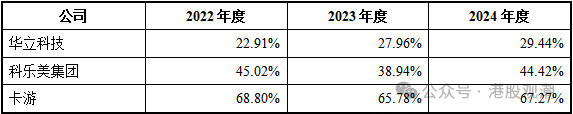除了营业收入与同行业形成偏离外,港股观潮发现公司的毛利率指标亦远高于同行业可比公司。由下表可见报告期内华立科技毛利率整体维持在20%-30%区间,科乐美集团得益于其业务的多样性保持在40%-50%区间。而发行人在自身IP仅为一个的情况下,通过IP授权的业务发展模式,盈利能力却实现远超同行业可比公司。而华立科技与微软XBOX、万代南梦宫(BANDAI NAMCO)、 世嘉(SEGA)、宝可梦、MARVELOUS、RAW THRILLS、IGS等具全球影响力的IP和开发商进行合作,与发行人业务类型高度相似,但其整体毛利率却只能维持在30%不到的水平,可发行人的毛利率却是其两倍,这亦是不符合正常商业逻辑的存在。