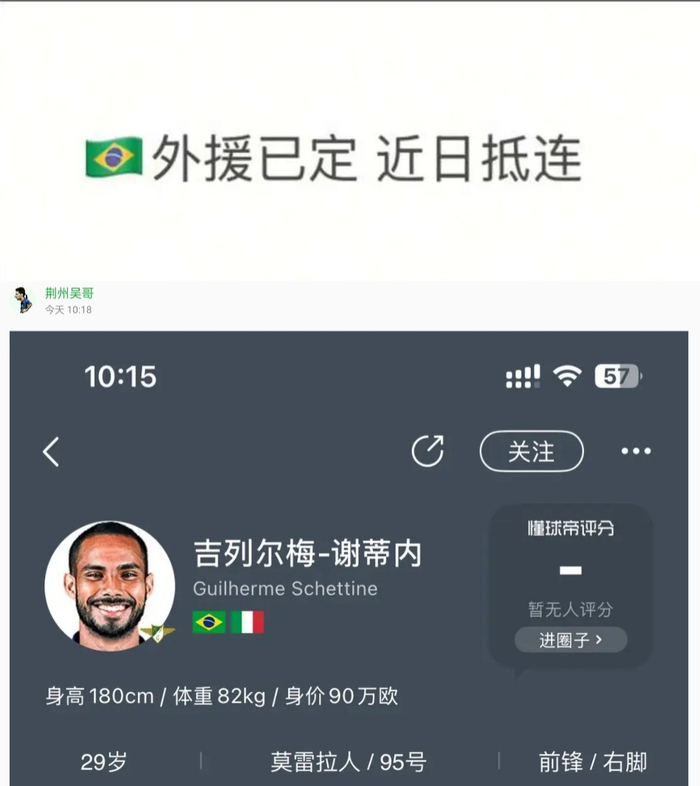 据《足球报》所说,大连英博一度把新外援的范围缩小到了二选一范围,但由于一些原因没能迟迟做出决定。现在据圈内知情人士透露,大连英博已经定下了新的外援前锋,这人就是现在效力于葡超球队莫雷拉人的前锋吉列尔梅-谢蒂内。资料显示,吉列尔梅-谢蒂内现年29岁,身高1米80,体重82公斤,身价90万欧元,司职前锋。