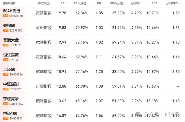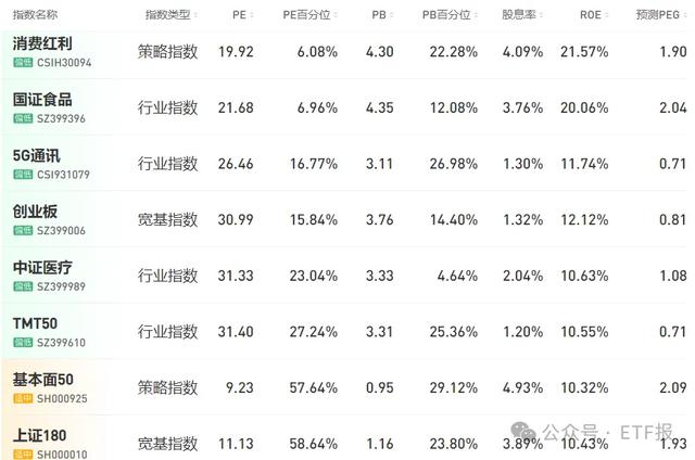 为方便寻找指数机会,特整理常见指数的估值数据,并基于PE及百分位进行3色分类。