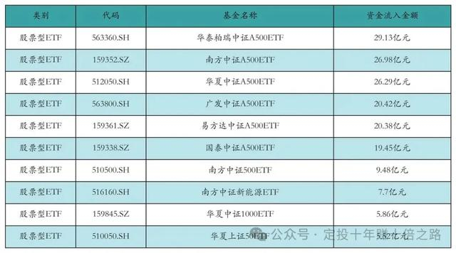 12月24日股票型ETF资金流入前10详情见下表:
