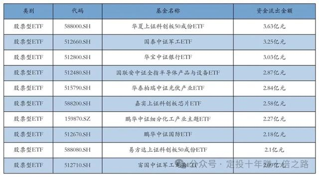 12月24日昨日股票型ETF资金流出前10详情见下表: