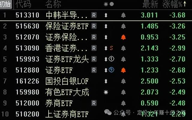 ETF跌幅榜: