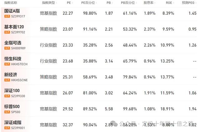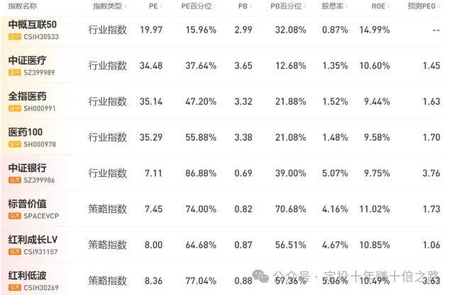 为方便寻找指数机会,特整理常见指数的估值数据,并基于PE及百分位进行3色分类。