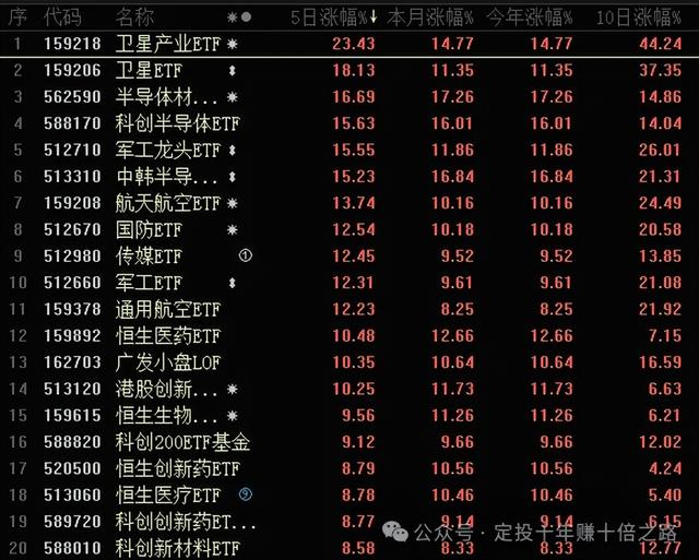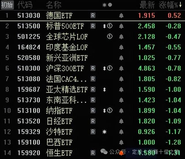 全球ETF涨幅榜: