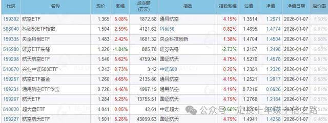 2026年1月8日最新ETF估值表数据: