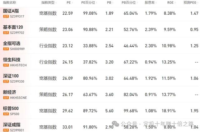 为方便寻找指数机会,特整理常见指数的估值数据,并基于PE及百分位进行3色分类。
