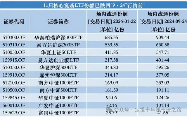 多只核心宽基ETF份额已跌回“9·24”行情前