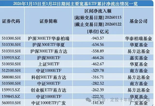 据Wind数据统计,1月15日至1月22日期间,全市场1315只股票型ETF(含跨境ETF)累计净流出额已高达4071.21亿元。