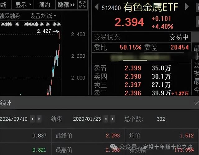 黄金白银狂飙,矿业有色金属ETF一度拉涨超4%,过去332天已涨+173%,这里如情绪回落随时有短期大回调需求,切记乱追。