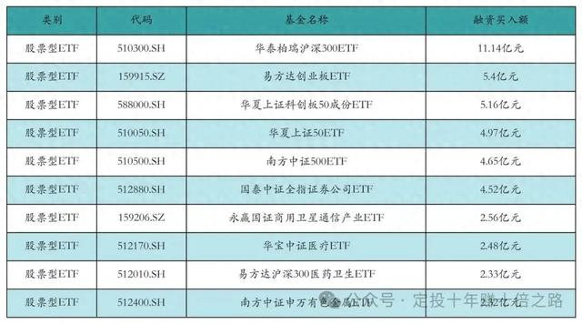 1月26日昨日股票型ETF融资买入额前10详情见下表:
