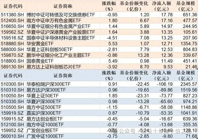 与此同时,华泰柏瑞沪深300ETF基金份额减少22.45亿份,净流出额106.19亿元;