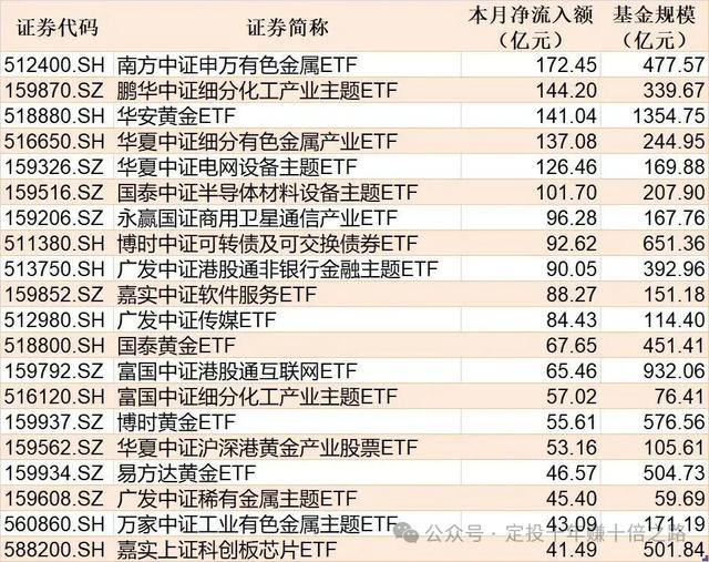 截至1月29日,本月资金净流入额居前20的ETF名单如下: