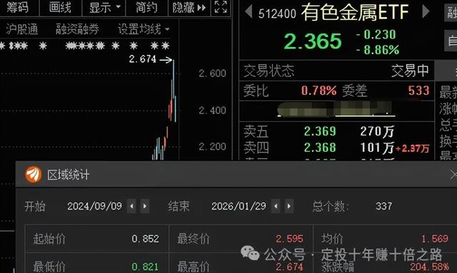 金银大宗疯狂 有色金属ETF今天一度跌超-9%,过去337天已涨+204% 要见顶了吗?这里如情绪回落,反弹后依然有回调需求。没有的不要碰了。