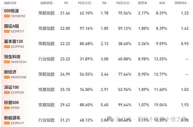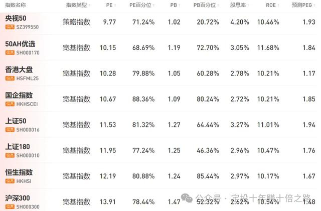 为方便寻找指数机会,特整理常见指数的估值数据,并基于PE及百分位进行3色分类。