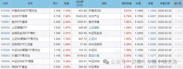 2026年2月3日最新ETF估值表数据: