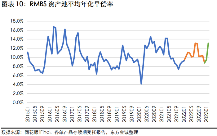 随着疫情政策优化调整及经济预期持续向好,居民消费意愿有所修复,储蓄意愿有望回归正常区间,但预计新旧住房贷款利差将进一步走阔,住宅成交回暖带动住房置换需求增加,预计RMBS资产池早偿率仍将维持在历史较高水平