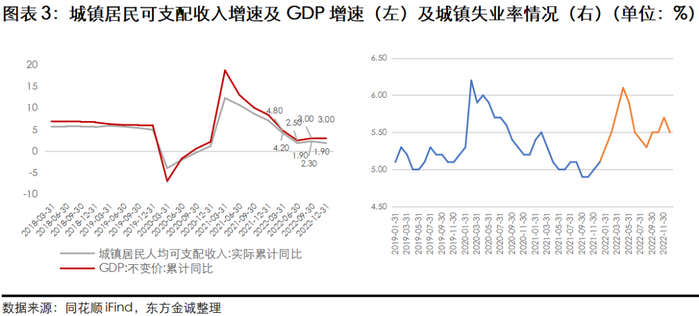 疫情反复背景下,2022年城镇居民人均可支配收入增速明显放缓,低于实际GDP增速,失业率有较大反弹,城镇居民的房贷偿债压力整体增大