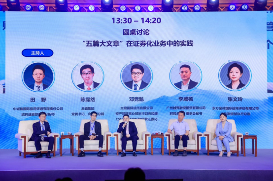 会上,东方金诚结构融资部执行总监张文玲参与了主题为 “金融‘五篇大文章’在证券化业务中的实践” 的圆桌论坛并发表见解。她指出,资产证券化市场已成为支持实体经济发展、优化金融资源配置的重要工具。尤其在金融 “五篇大文章” 政策指引下,资产证券化业务在科技创新、绿色低碳、普惠金融、养老金融和数字化转型等领域的作用日益显著。资产证券化产品在这五大领域已分别通过知识产权证券化、绿色资产证券化、中小微企业资产证券化、数据资产证券化等产品类型贡献力量。未来,在巩固既有成效的基础上,还将探索养老社区收益权、养老抵押贷款等证券化模式,以释放更大潜力。