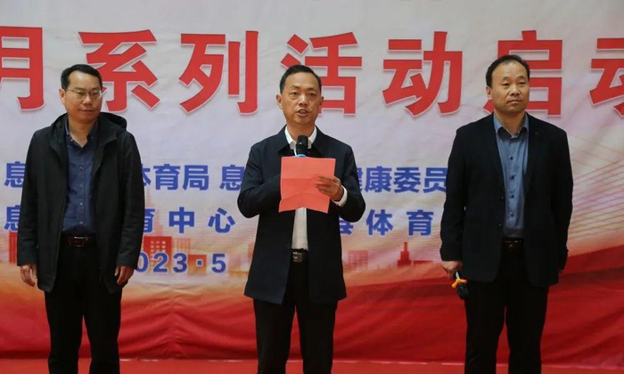 为认真贯彻落实《全民健身计划》,努力构建高水平全民健身服务体系,4月28日上午,息县教体局联合息县卫健委,在息县体育馆举办2023年息县体育馆活动日暨全民健身月系列活动启动仪式。县卫健委党组成员、副主任吴保健,县教体局副局长张传周、副科级干部裴洄参加启动仪式。