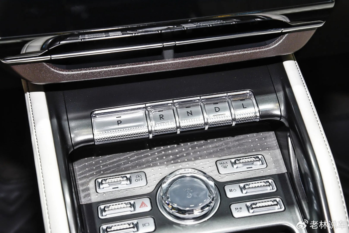 中控屏幕下方有一排按键式换挡机构,而采用这种形式、这种设计的品牌只有一个,那就是林肯汽车。现在知道品牌了,接下来就辨别车型,该车的中控台上方是贯穿式曲面大屏幕,而林肯冒险家和林肯Z也配备了贯穿式大屏幕,但却不是曲面设计,采用曲面设计的只有一款车型——林肯航海家。