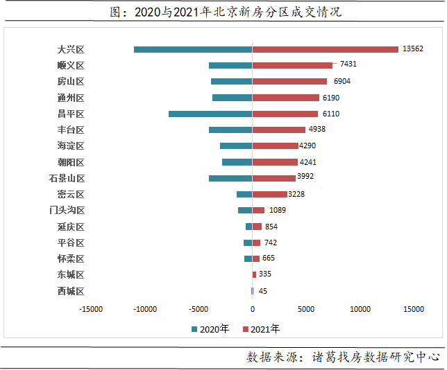 新房市场供需两旺,均创2016年以来年度新高,大兴、顺义和通州等近郊区域成为成交主力。尽管新房供应攀升登顶,但由于去化良好,库存压力相较于2020年整体有所降低。