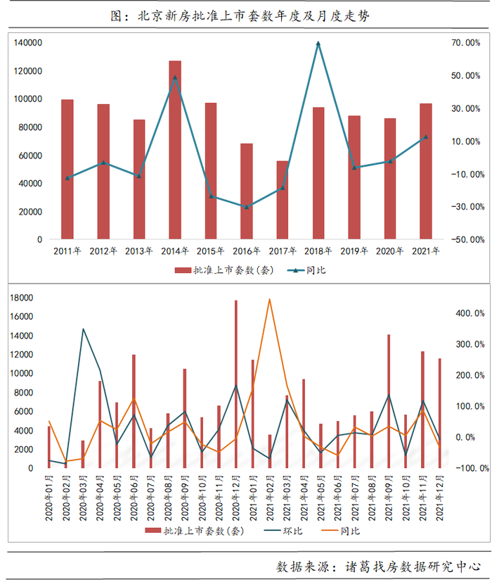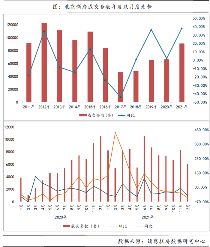 2021年北京新房、二手房成交量持续攀升,均创近5年以来年度新高,房价水平保持平稳。预计接下来,随着春节将至,北京市场成交回调的可能性较大。