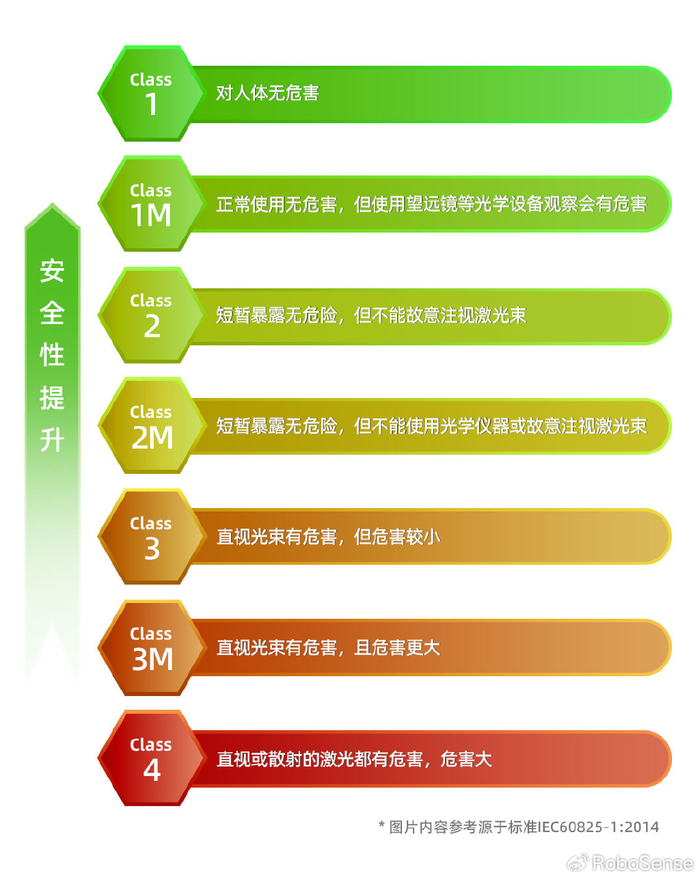 根据这个标准,汽车和机器人中使用的激光雷达,都能达到Class 1最高安全等级。