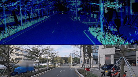 例如,在复杂光照条件下,上一代激光雷达具备主动探测、不受环境光线变化干扰的优势,但其在不同环境中的鲁棒性仍有提升空间,特别是在明暗快速变化的情况下,容易出现短暂的信噪比下降、信号失真等状况,影响探测距离和精度。RoboSense速腾聚创EM4产品采用数字化技术,可以实时监测环境光照强度并动态补偿环境光的影响,在全照度(0KLux~100KLux)下,性能无衰减、点云表现一致。这保证车辆能够在强逆光、进出隧道,或是迎面远光等明暗快速变化的情况下,保持稳定的主动探测状态,鲁棒性大大提升。